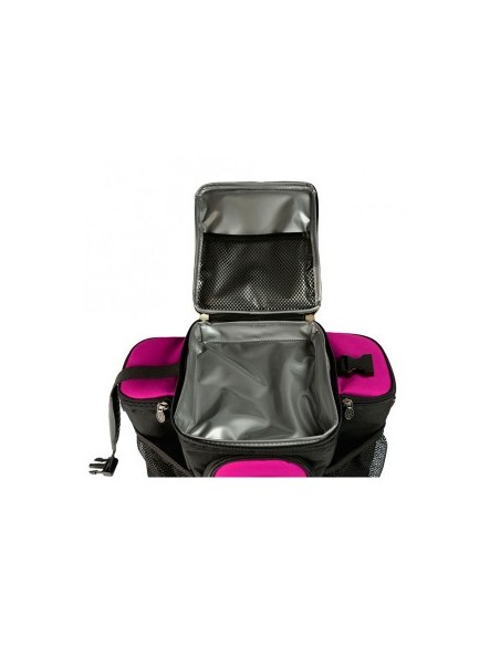 para que se conserven en un mejor estado durante más tiempo. Dispone de un compartimento principal donde se pueden guardar entre 3 y 4 comidas, un bolsillo superior de almacenamiento, dos bolsillos laterales con aislamientos, dos bolsillos laterales de malla y una bandolera de hombro cómoda.
