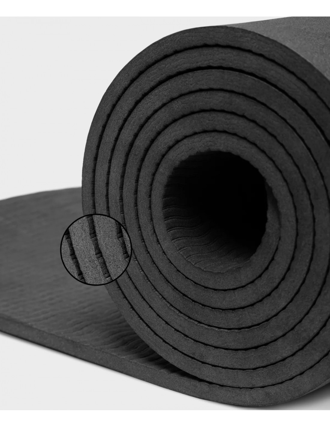 La esterilla de yoga Plank Black ha sido fabricada en TPE, un material respetuoso con el medio ambiente y extremadamente resistente, flexible y ligero. Superficie antideslizante y base texturizada para una mejor adherencia. 6 mm de grosor para una mayor estabilidad y comodidad para las articulaciones. Triple logo central para favorecer la alineación. Fácil de transportar gracias a la correa incluida.