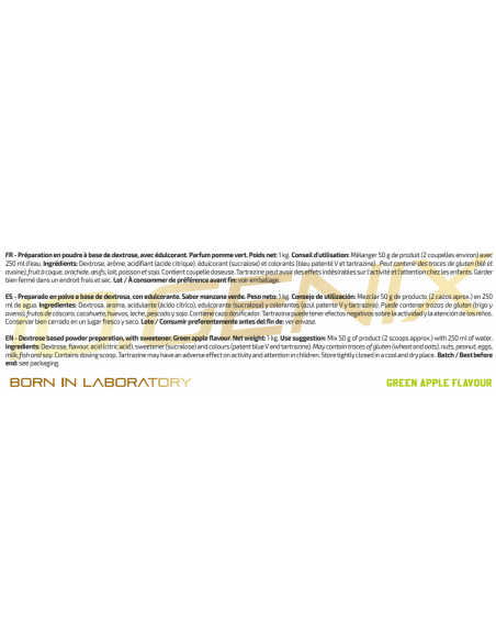 Ingredientes: Dextrosa, aroma, limón en polvo, acidulante (ácido cítrico) y edulcorante (sucralosa). Puede contener trazas de gluten (trigo y avena), huevos, leche, pescado y soja. CONTIENE CAZO DOSIFICADOR. Conservar bien cerrado en un lugar fresco y seco.