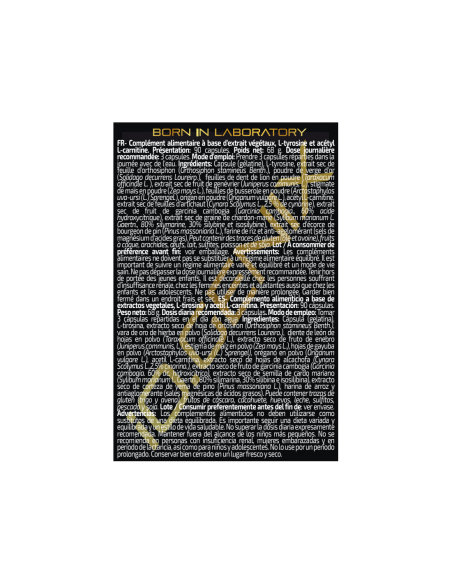 Uno de los diuréticos más completos que se pueden encontrar, al contener hasta 12 extractos de plantas naturales que actuan sinérgicamente con el aminoácido L-Tirosina y Acetil L-Carnitina.
