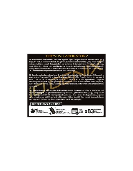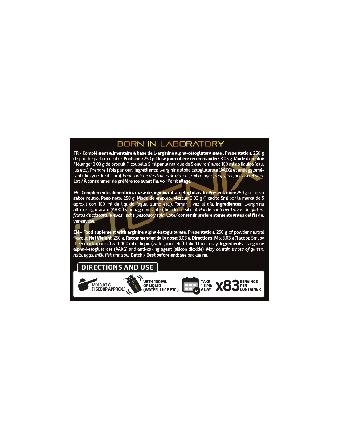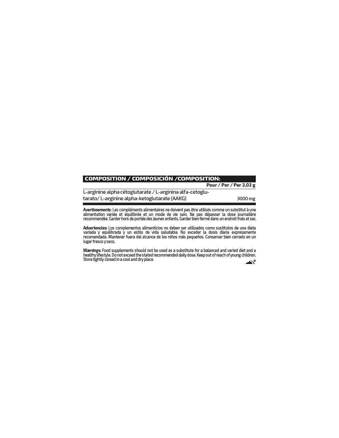 Uno de los suplementos más populares en  los deportistas, formado por el aminoácido L- arginina y el ácido alfa-cetoglutarato, ahora disponible en polvo