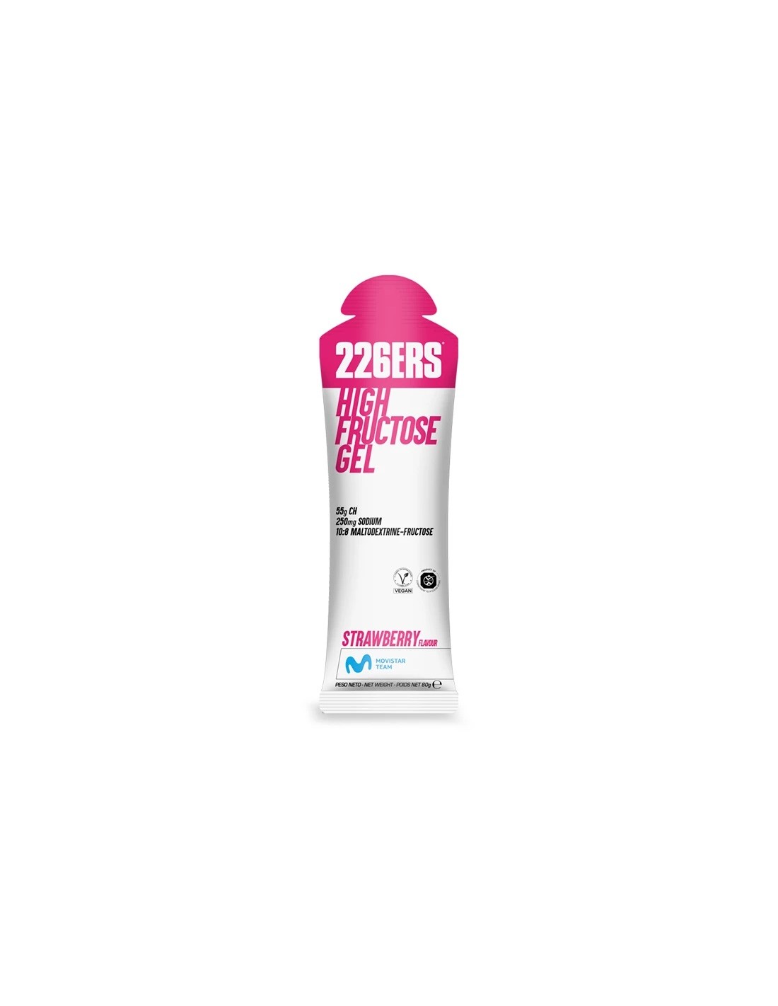 High Fructose Gel aporta 55g de aporte de hidrato de carbono y 250 mg de sodio por gel que provienen de la maltodextrina y de la fructosa, con una proporción 10:8.