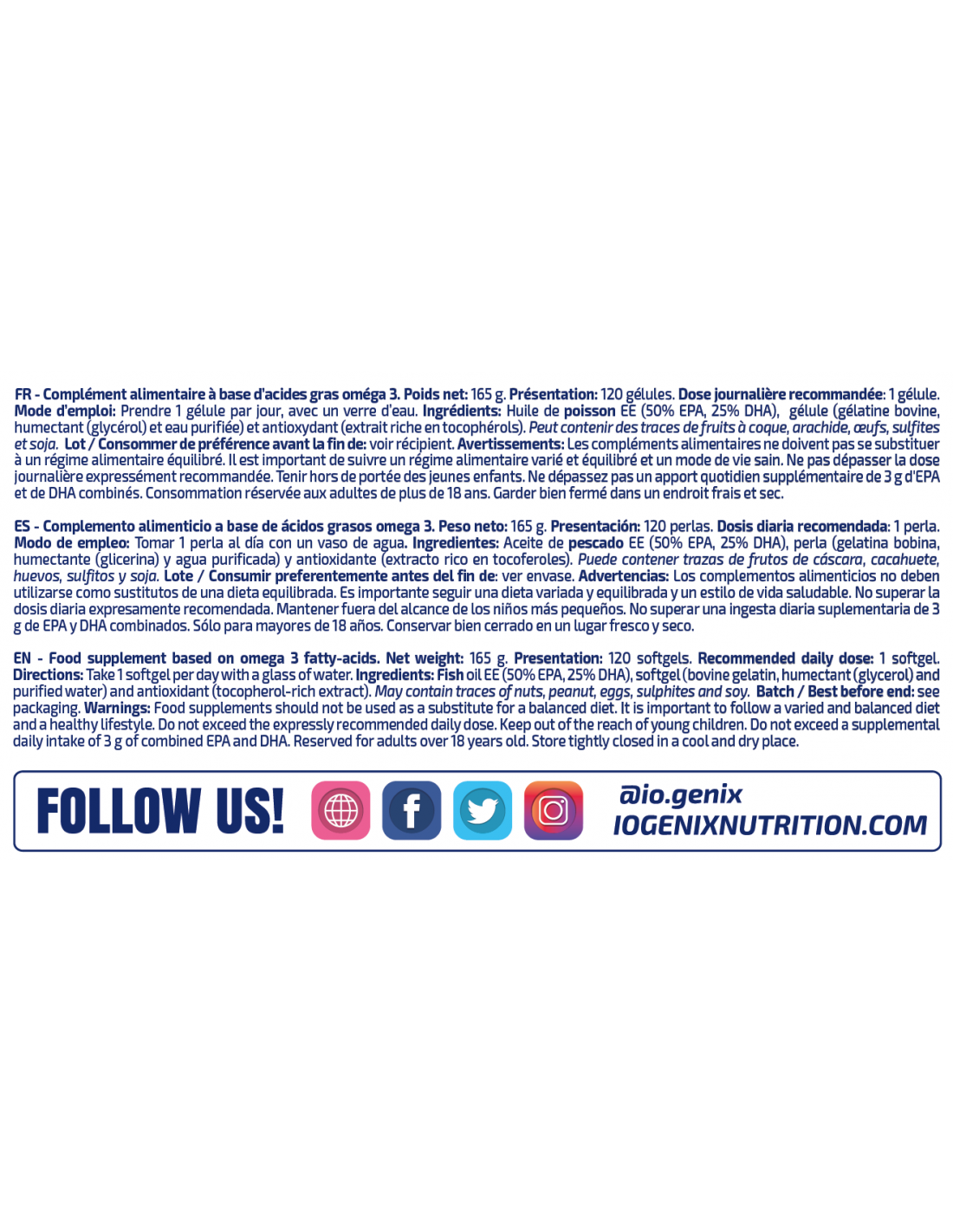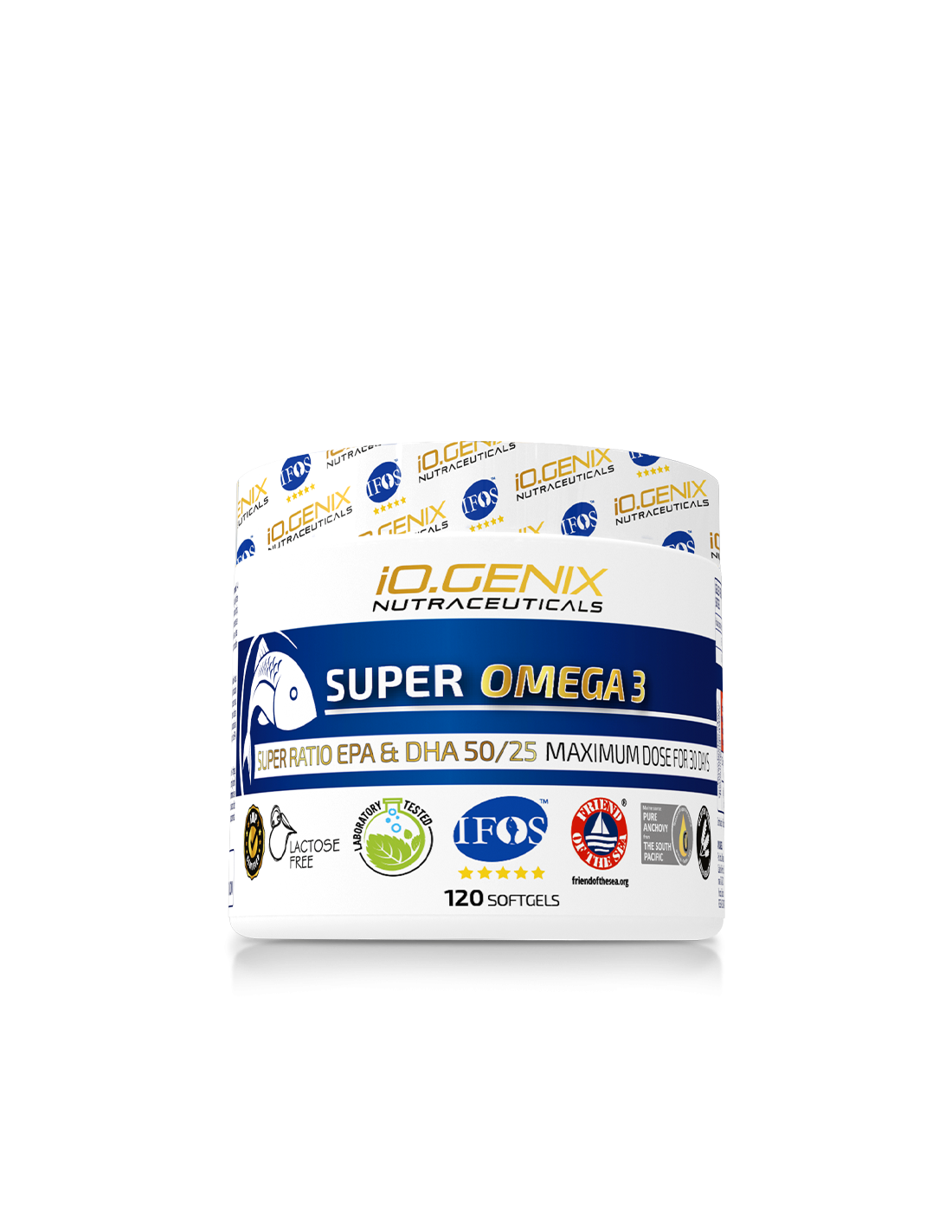 Dentro de la línea LUXURY SERIES de IO.GENIX hemos traído nuestro nuevo producto, SUPER OMEGA 3. Se trata de unas perlas con puro aceite de pescado y como novedad, hemos buscado que la relación EPA-DHA fuese 50:25, de esta forma, obtienes los mismos resultados consumiendo menos perlas.