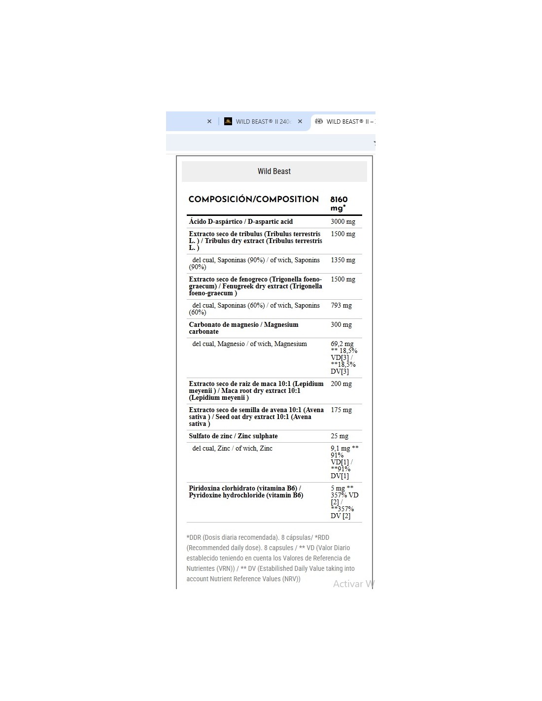 - Avena Sativa 175mg 10:1 y Maca Andina 200mg 10:1, ambos extractos con infinidad de bibliografía sobre sus potentes efectos afrodisiacos…. con Wild Beast te aseguramos que darás el salto.