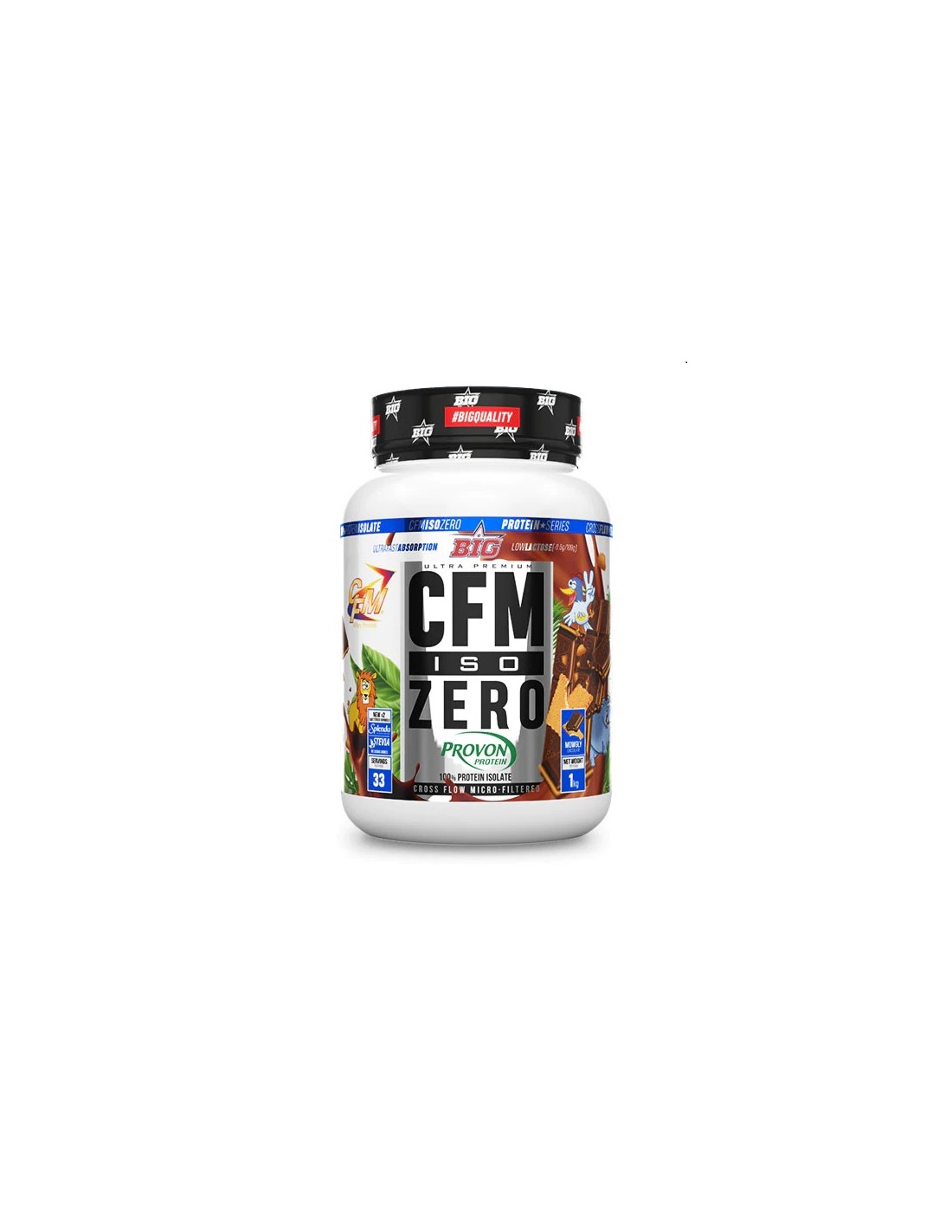 CFM ISO ZERO de BIG® es la evolución natural de nuestra emblemática CDM ISO DRY. CFM ISO ZERO está elaborada exclusivamente con aislado de proteína de suero al 90% de una de las mejores materias primas disponibles en el mercado de la suplementación deportiva: Provon® 295 CFM de Glanbia Nutritionals®. Obtenido tras un proceso de microfiltración de flujo cruzado exclusivo de Glanbia, que asegura que se mantenga el espectro completo de proteínas no desnaturalizadas presentes en el suero de manera natural, Provon® 295 CFM es un aislado de proteína de suero de leche de una calidad excepcional, altamente soluble, disponible en fórmula instantánea y con un sabor totalmente neutro.